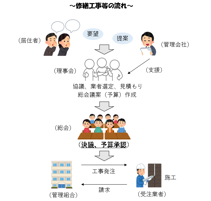 そして、本当に必要なものだけを実施、全て管理組合様と業者との直接取引の形を取り、私共への手数料はその都度、ご承認を頂いております。